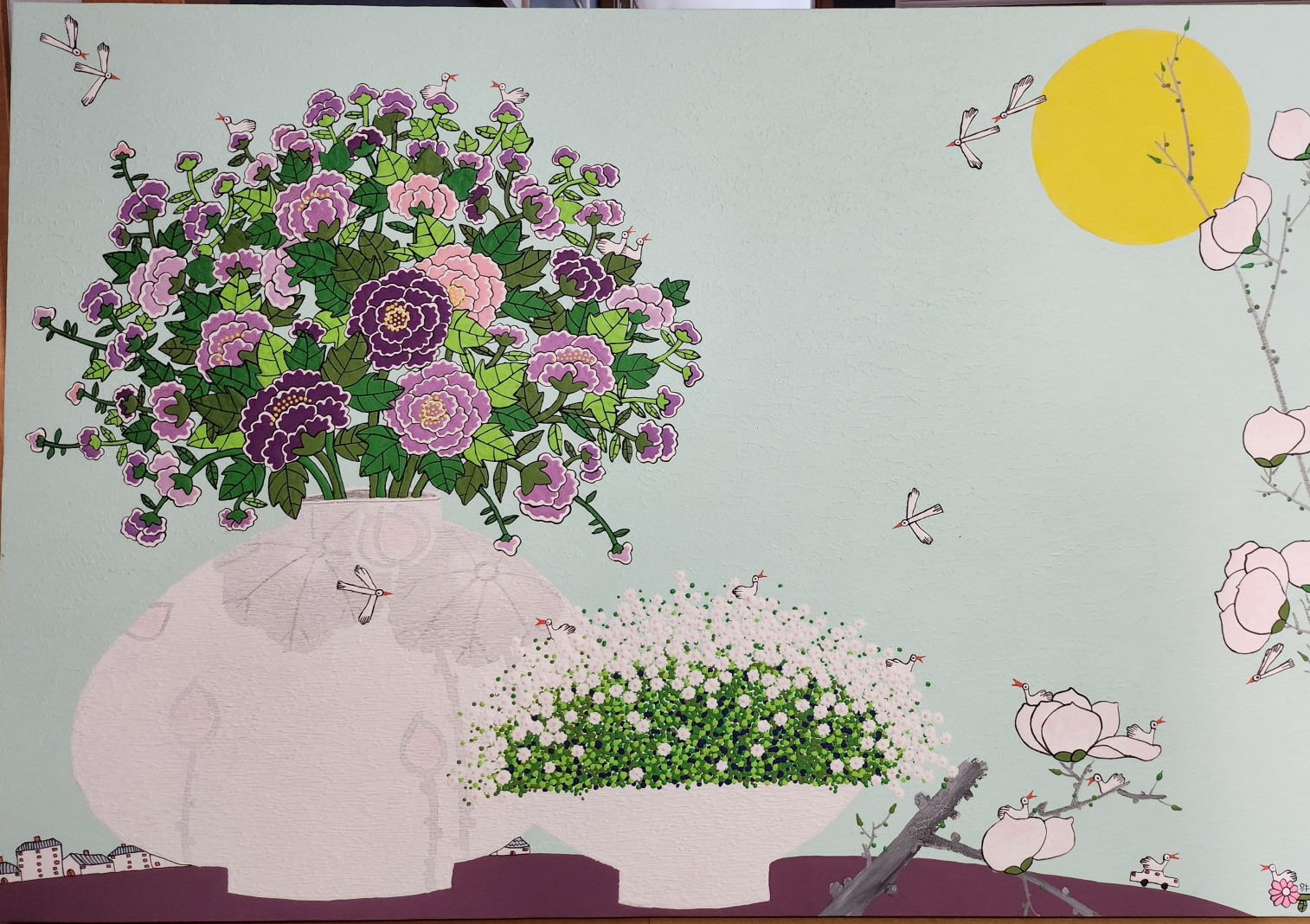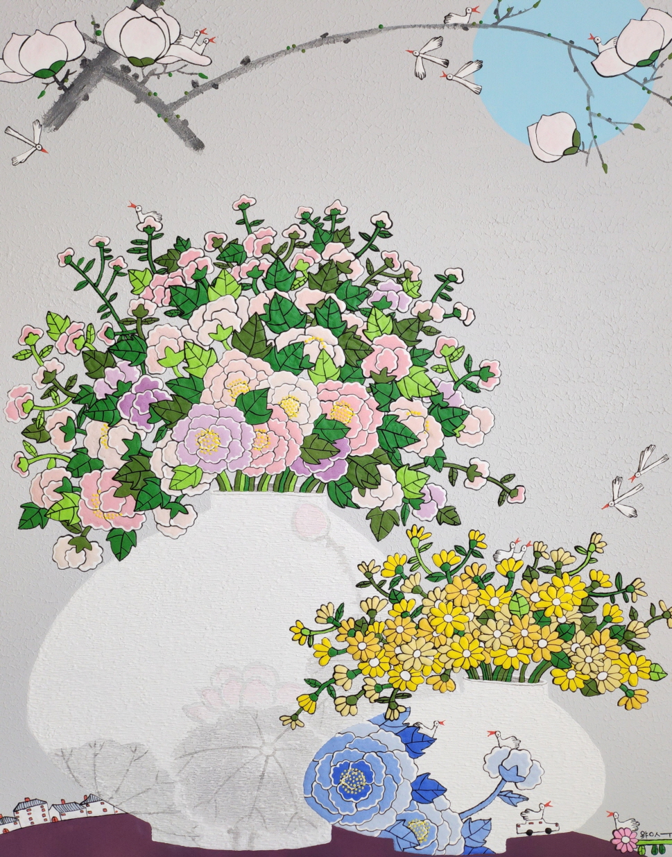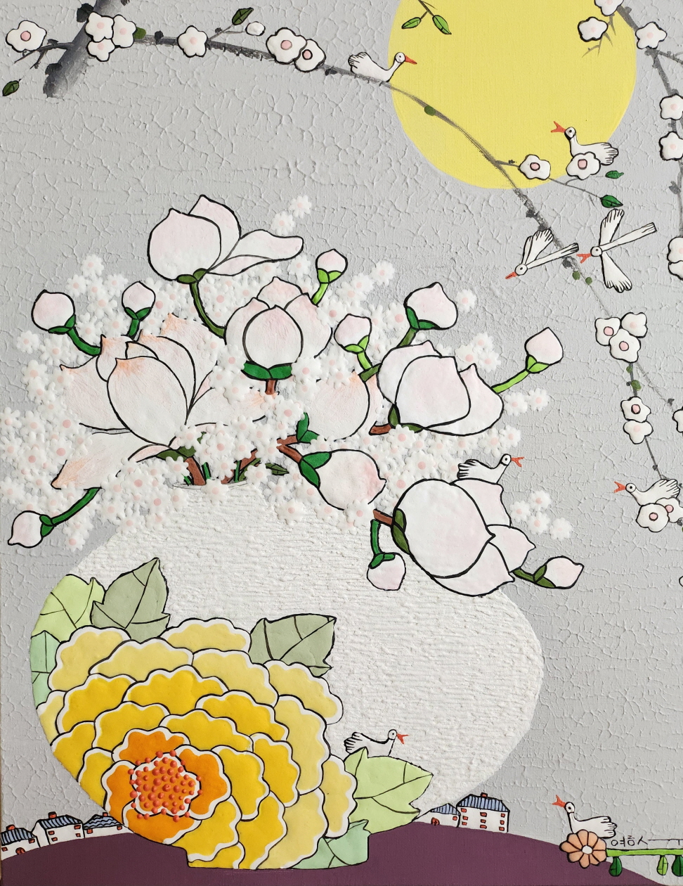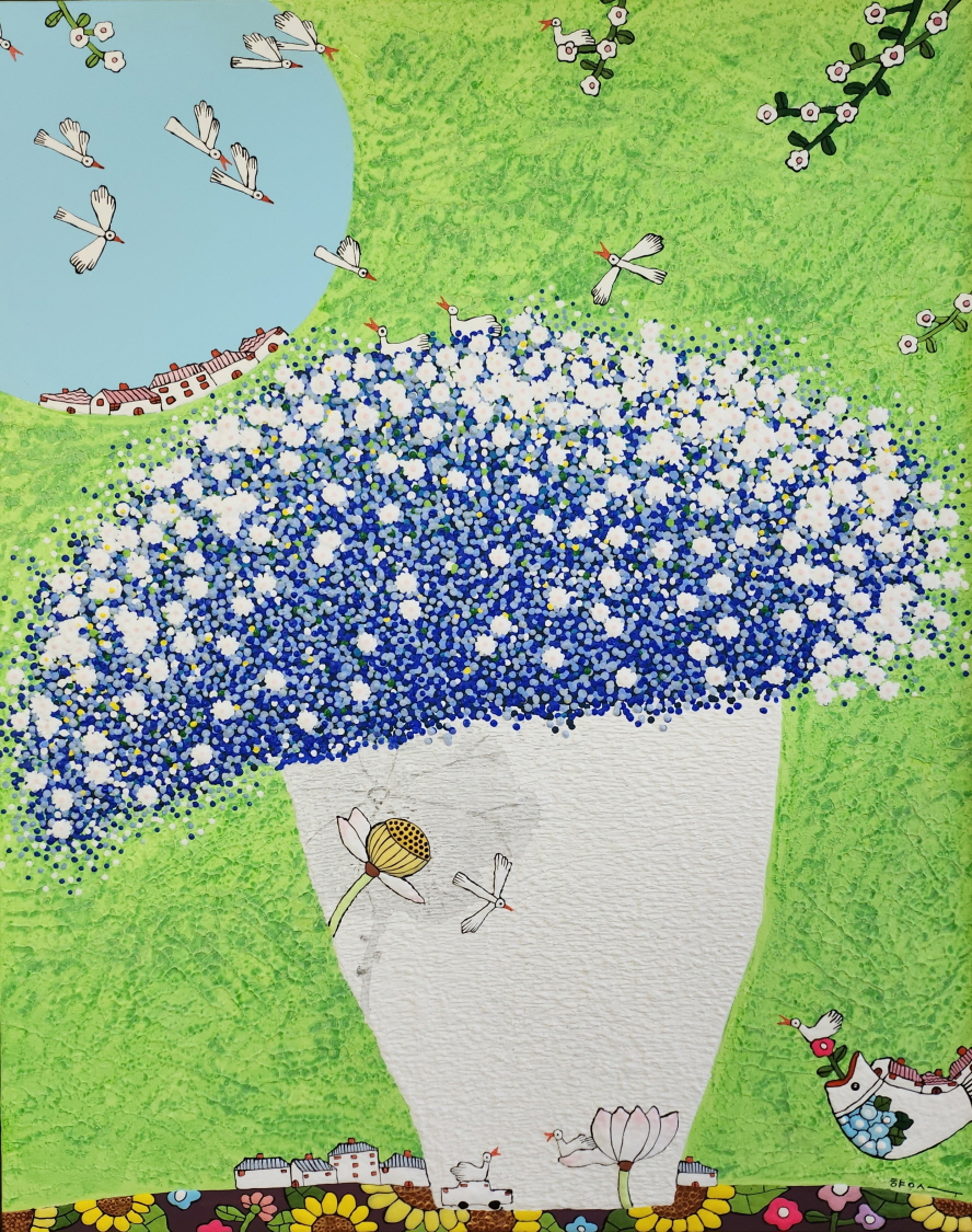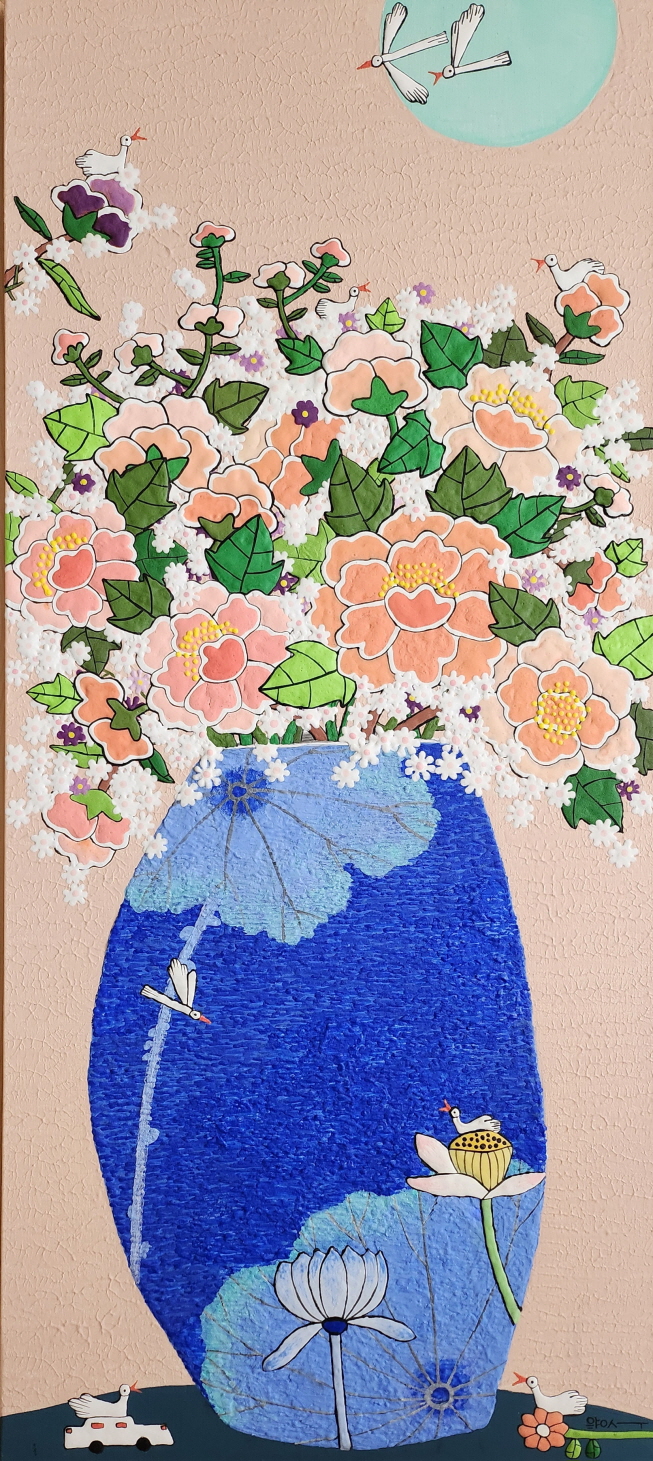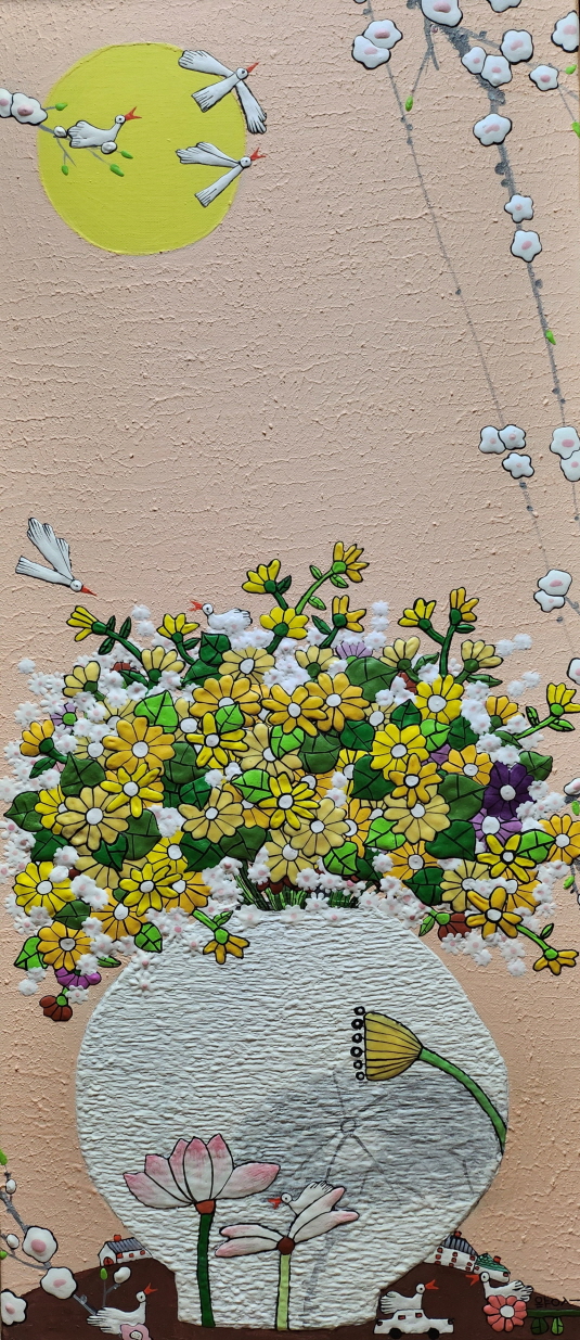 권향수 개인전 및 단체전 경력 <개인전및초대전>23회 2024 9월1일~30일 3s 갤러리 초대전 2024. 1월10 일~29일 돈화문갤러리초대전 2023.9월1일-9월30일 서울 3s갤러리 초대전 2023.5.1~5.31 고양시 백석 앨리 갤러리 초대전 2022 7.19~8.6하남시 갤러리베누스 초대전 2022..1.21~1.28서울아산병원초대전 2020.05 분당 보바스기념병원 초대전 2019.08 서울아산병원갤러리 초대개인전 2018.03 미국중앙일보 LA지사 Artcenter 초대전 외 단체전 다수 부산 대구 홍콩 프랑스 브라질 미국 인도 중국 국내외아트페어 다수 현대조형미술대전운영위원심사위원 경기미술대전운영위원및심사위원외다수 -작가노트- 우연히 밤하늘에 둥근달을 보게 되면 습관처럼 잠깐 소원을 빌게 된다. 어릴 적 보름날밤 가마솥 안 그릇에 쌀을 담아 촛불 켜시던 어머니의 정성이 고스란히 담은 깊은 사랑이었던걸 내 아이들을 키우면서 점점 더 닮아간다. 세상의 엄마들이 다 그러하듯이- 어머니의 눈빛이 내 얼굴에 담겨지고, 그 옛날 꿈꾸던 추억을 더 곱고 순박하게 표현하고 싶었다. 어머니의 둥근 달, 지천으로 피어있는 해바라기와 키 작은 꽃들- 착한 집들이 소담히 마주하고, 희망과 사랑을 노래하는 작은 새는 어쩌면 부부, 연인, 자녀 일수도.... 나의 그림은 인연이 되어 만나는 모든 사물들을 형상화하여 소박한 민화 느낌으로 단순하게, 자유롭게, 조금은 모자란 듯 표현하고자 했다. 어머니가 나에게 그랬듯이 내가 내 딸(아이들)에게 최고의 아름다움과 소중하고 귀한 행복한마음이 내 작품을 보는 사람들에게 한 보따리선물 되어 잠시나마 추억과 희망의 메시지가 전달되어 행복하고 여유로운 미소가 번지기를 소망해본다.
