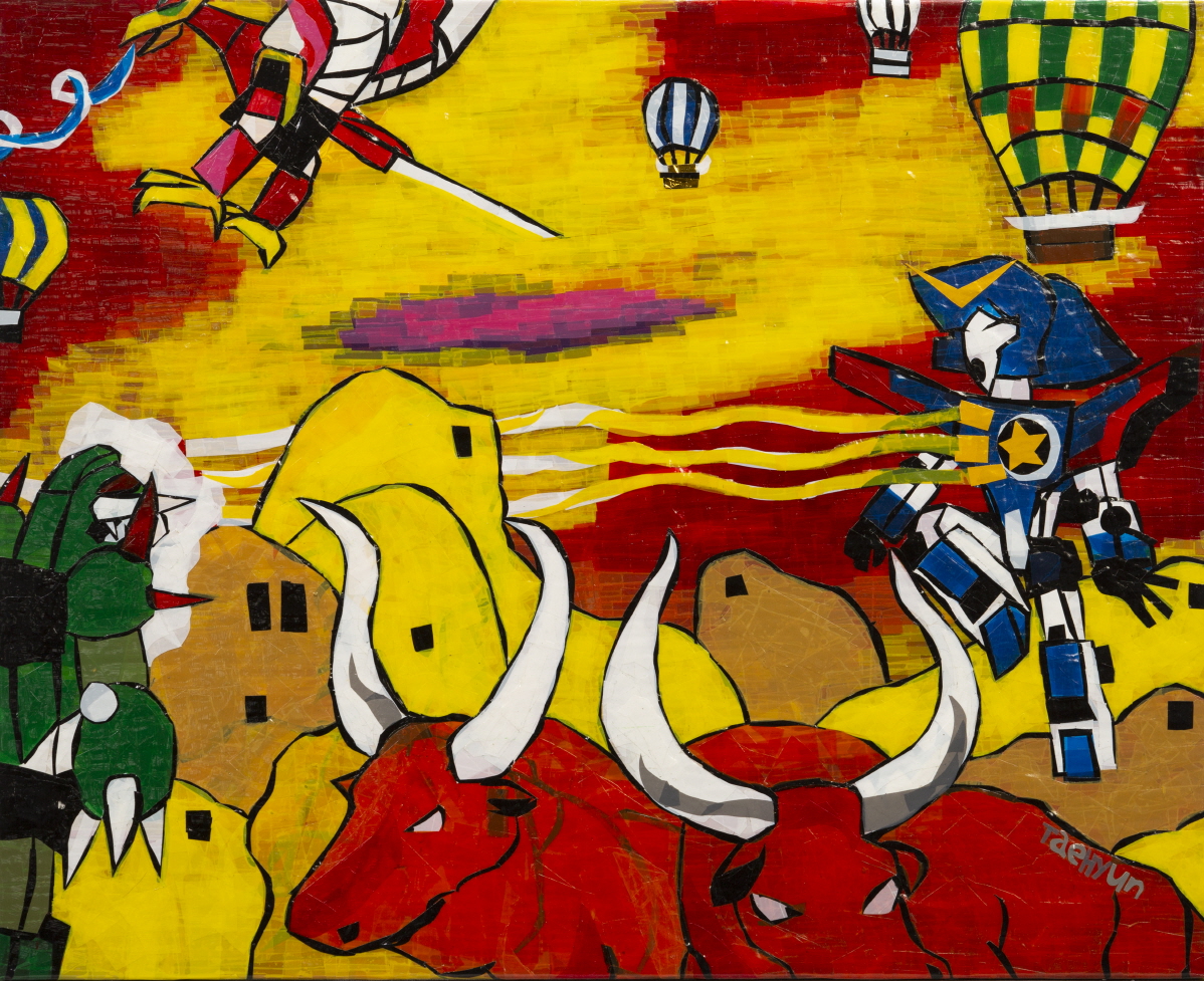 [박태현 간단 프로필] Park:paper upcycle Tae :Transfer Hyun:Humanoid animation 만월 중학교 졸업 미추홀 고등학교 졸업 (주) 디스에이블드 소속작가 장애인식개선 강의 출강 [수상경력] 2023,24년 대한민국 회화대상전 입상 2023년 제1회 국민일보 아르브뤼 미술상 장려상 수상 2011~22년 대한민국 장애인 미술대전 7회 수상 2021년 대한민국 회화대상전 특별상 [전시경력] 2010년부터 2024년 까지 개인전 8회, 초대전, 기획전과 특별전, 단체전 90회 참여 블러그 blog.naver.com/sunwha2560 인스타 taehyeon8136 메일_sunwha2560@naver.com ☎ 010-8321-4677 ❑ 작가 소개와 노트 “박태현 작가는 테이프를 뜯고 붙이는 반복행위를 통해 자신의 내면세계와 성장과정을 통한 사적 경험을 작업으로 담아낸다.” 박태현 작가는 색깔이 단조로운 포장용 테이프로 그림을 그린다. 그에게는 물감인 셈이다. 그럼에도 색감이 깊다. 테이프를 여러 차례 겹치고 겹쳐 붙여서 원하는 색을 내기 때문이다. 그의 작업의 특이한 것은 그림을 그릴 때 밑그림이 없이 곧장 그림을 그린다는 것이다. 그림을 그릴 때 형태를 안에서 채워가다가 바깥에서 마무리하는 것, 먼저 면을 채워서 선을 이끌어 내는 것, 상대와 일상의 대화가 제한적인 작가가 대상의 특징을 콕 집어내 그림으로 그것도 테이프로 표현해 낸다는 것이다. 작가의 작업은 자신의 정신세계와 만화 속 세상에 대한 일관된 관심에서 출발한 것이지만, 점차 주변의 사랑하는 사람들, 동물, 식물, 곤충 등으로 소재의 영역을 넓혀졌고 특별히 작가에게 여행은 넓은 세상을 향해 나아가려는 몸짓으로 새로운 영감을 부여한다. 입체 조형작업을 즐겨하며 박태현과 친구들 인형들을 좋아한다. 작가는 관객들 앞에서 ‘live taping(라이브 테이핑)’ 시연은 작가와 대중 간 소통의 거리를 좁히려는 시도를 하고 있다. ○ 개인전 2024 박태현과 친구들 다섯 번째 [KMJ 갤러리] 2024 무지개를 찾아서 기획 초대전 [갤러리B] 2023 인천순회전[갤러리 벨라] 2023 세 개의 우물에서 길어 올린 그림, 테이핑화가 박태현 전 [아르떼숲] 2022 박태현과 친구들 네 번째 [토다의 집] 2019 박태현과 친구들 세 번째 [대구 텀트리프로젝트] 2014 박태현과 친구들 두 번째 [푸르지오밸리] 2013 박태현과 친구들 첫 번째 [언오피셜프리뷰 갤러리] ○ 특별전 2024 오버더 레인보우 전(홍대, 부산, 춘천 상상마당) 2024 김근태 기념도서관 전시 2024 인천미술한마당 페스티벌(가온갤러리) 2024 강원도 청소년 올림픽 문화행사 전시(시립미술관) 2023 우리가 사는 세상 PALETTE(소다미술관) 2022 Dreamability (예술의 전당 디자인 미술관) 2022 장애예술인 특별전시 (춘추관) 2022 우영우의 고래 우리들의 고래전 (아르떼 숲) 2022 아름다운 가치(더러미 미술관) 2021년 ACEP 발달장애 아티스트 특별초대전(예술의 전당 서예박물관) 2021 국제장애인 미술교류전/ 같은 곳을 바라보며(스페이스 작) 2020 발달장애인 청년 작가전 2020(라메르) 2018 고기리의 7인 전(일본 오미하치만 노마미술관) 2018 인도네시아 한국문화원 문화의 달 초청인사 2017 해피투게더(학아재 미술관) 2014 인천 장애인 아시안 경기대회 특별전(아시안게임선수촌) 2013 평창동계 스페셜 올림픽 특별전(알펜시아 컨벤션홀) ○수상 인천미술협회 한마당 페스티벌 청년작가 우수상, 대한민국 회화 대상전 다수 수상, 제1회 국민일보 아르브뤼상 수상, 대한민국 장애인 미술대전 다수 수상 ○ 아트페어 참가 2024 핑크아트페어 (메리어트 호텔) 2024 서울 모던아트쇼(예술의전당 한가람미술관) 2024 코리아 아트페스티벌(송도 켄벤시아전시관) 2024 서울 아트페어 (세택전시관) 2022 장애인 아트페어 (양재A 전시관) 2021 장애인 아트페어 2019 오티즘 엑스포(양재at 전시관) ○ 작품소장 - 한국화랑협회 [황제] - 아르떼 숲 갤러리 [쿠사마야요이] - 소다미술관 [ 세븐 외 2]