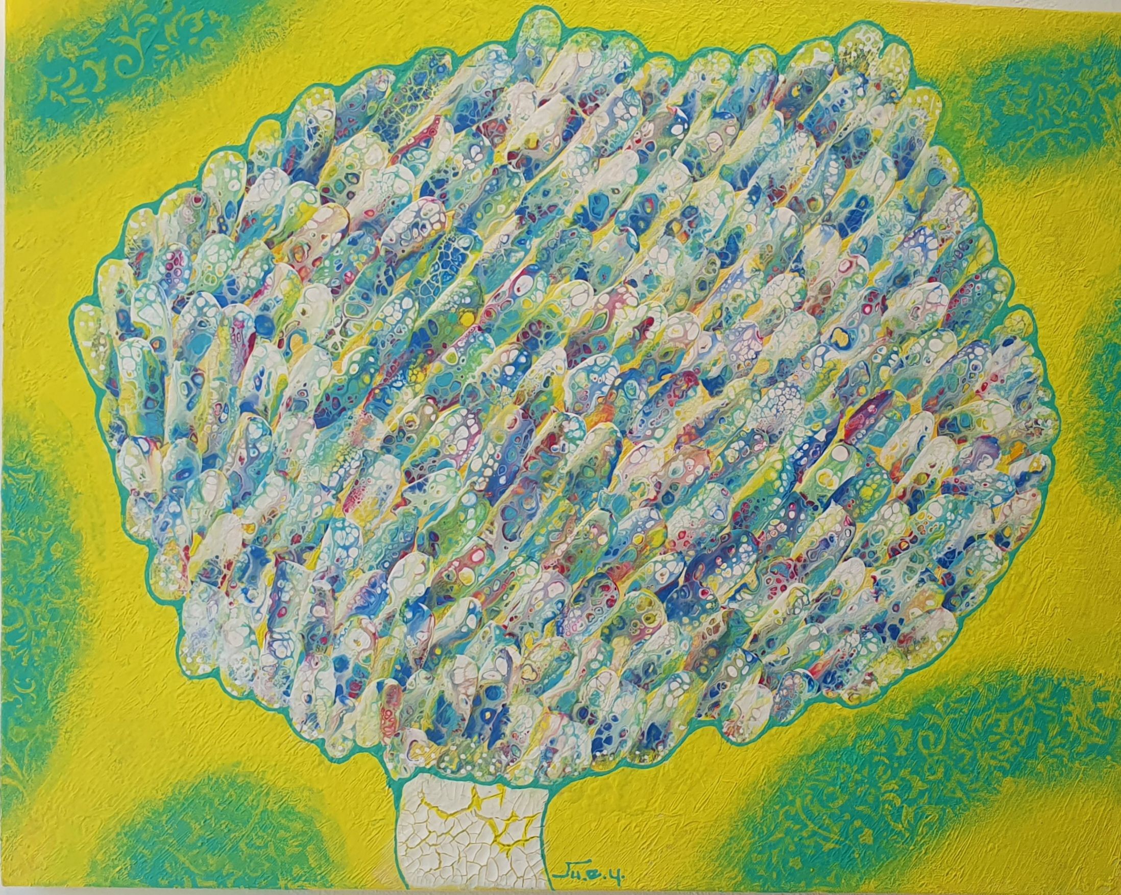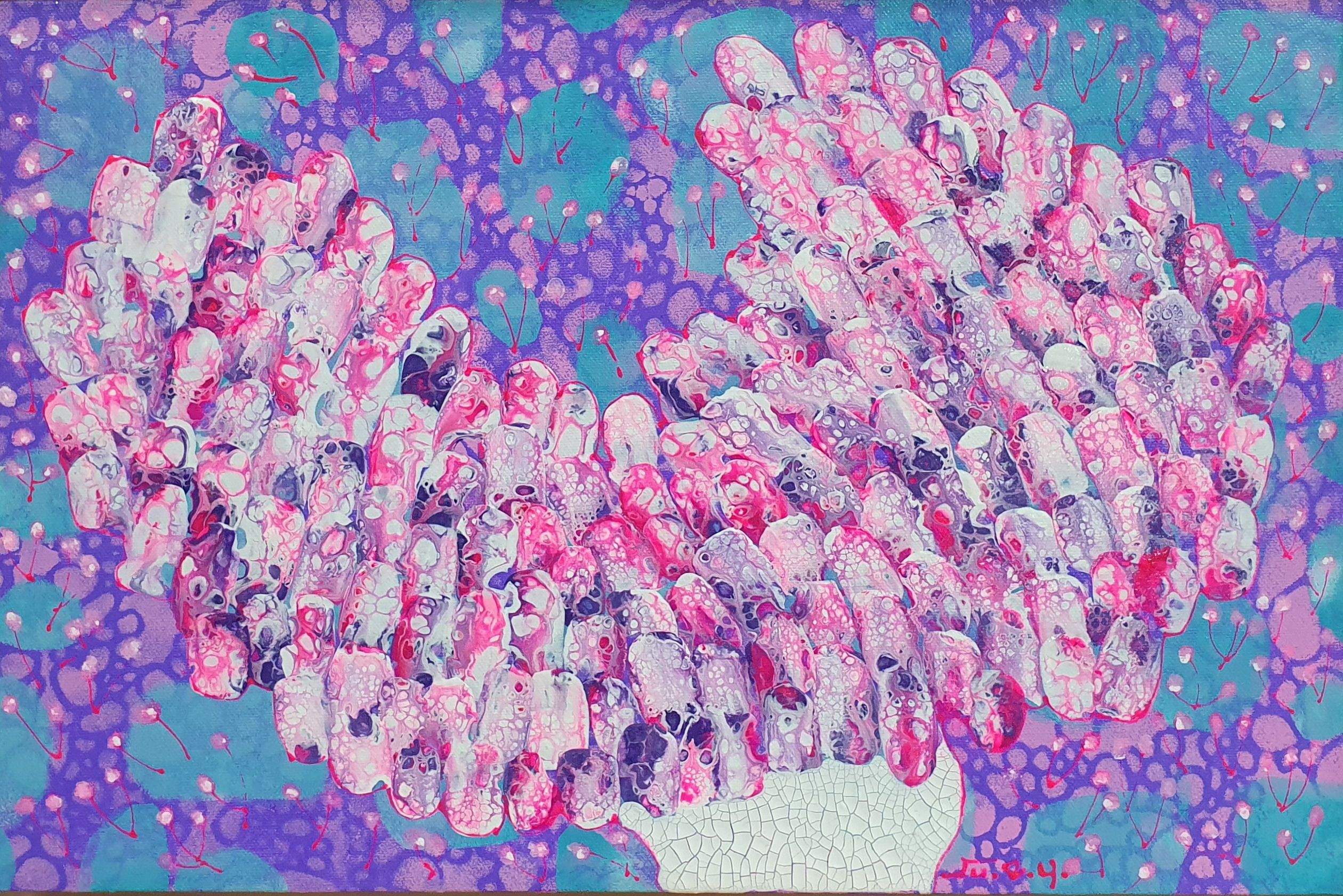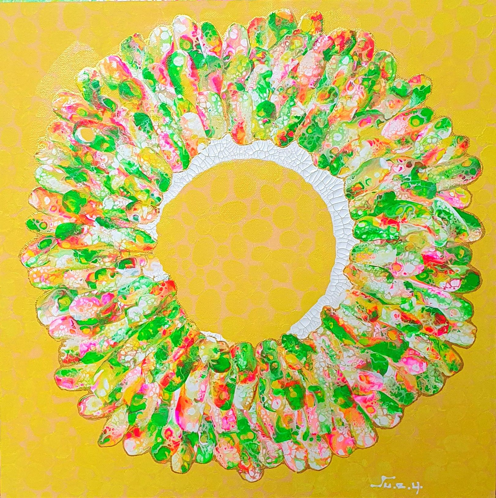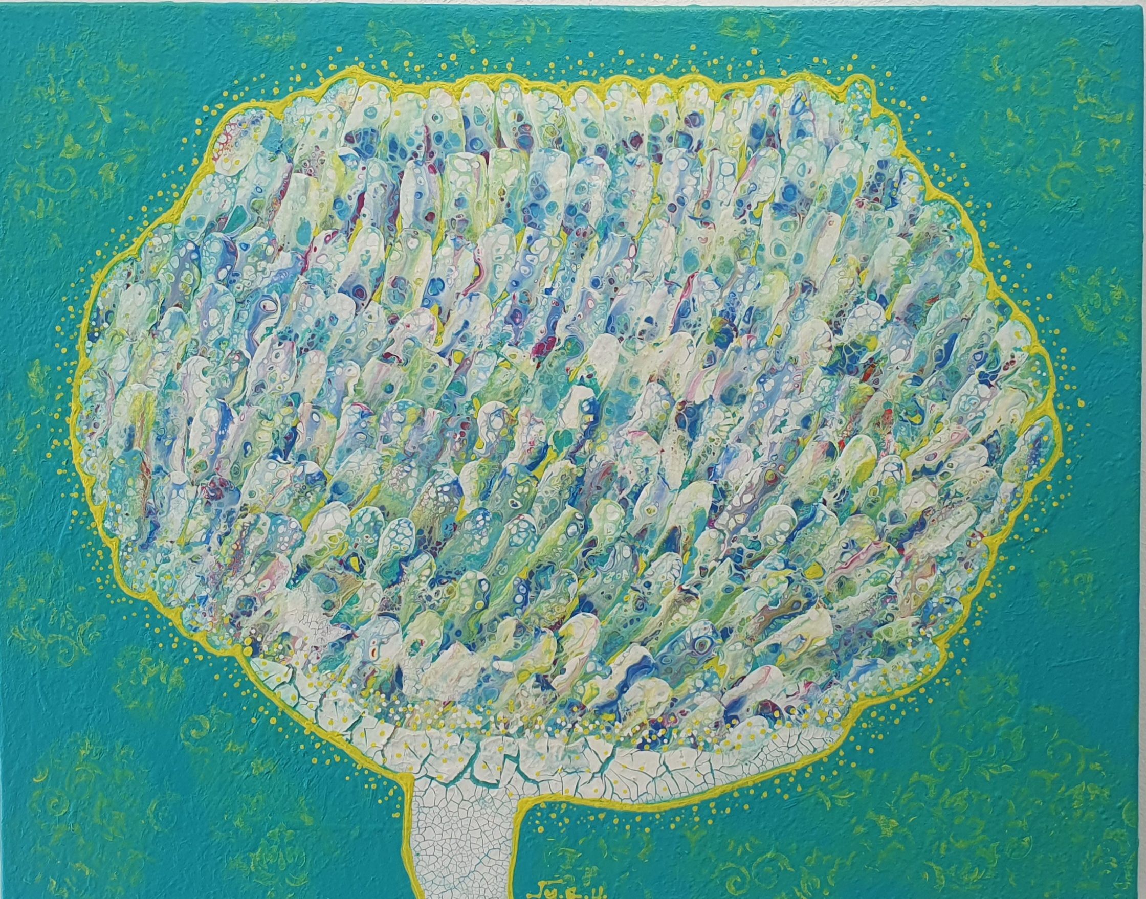 주은영 Ju eun young 전화: 010-8923-3642 (개인전 21회) AP갤러리 초대전 노원문화원 기획초대전 경춘선숲길갤러리(공모당선초대전) 도솔미술관 개인전 로쉬갤러리 초대전 인사아트프라자갤러리 개인전 콩세유 갤러리 한가람 갤러리 도봉갤러리 초대전 등 서울아트쇼 제주아트페스타 부산화랑아트페어 BAMA 조형아트쇼PLAS 싱가폴아트페어 홍콩WHATS 대구아트쇼 등 국내외 아트페어 및 단체전 220여회 현 사단법인 국제현대예술협회 인사동사람들 사무총장 인사국제아트페어 사무총장 한국미술협회 녹색미술협회 노원미술협회 노원문화재단 104마을 예술창작소 입주작가(2018~2024) -작가노트- 나의 작품들은 유동적이고 자연스러운 패턴을 통해 화면 전체에 리드미컬한 구성감을 제공하려고 시도하였다. 배경의 텍스처와 레이어링 콜라주 기법은 화면의 전경(Foreground)과 배경(Background)을 명확히 분리하면서도 유기적인 연결성을 유지하면서 불규칙하게 배치하여 비대칭적 구성을 이뤄 역동성을 강조했다. 또한 다양한 색채와 톤을 활용하여 깊이감과 공간감 그리고 균형감을 효과적으로 구현하려고 하였다. 작품 전반에 흐르는 색채의 조화는 정적이면서도 생동감 있는 이중적 감정을 전달한다. Fluid Art 기법에서 나타나는 셀(Cell) 효과와 유동적 물감 흐름의 텍스처는 화면에 독특한 시각적 요소를 제공하고 매끄러운 배경과 대비되는 콜라쥬 피스의 입체적 질감은 작품의 촉각적 특성을 강화하며, 시각적 긴장감을 조성한다. 각 피스들을 Layering하여 공간적 깊이와 입체감을 극대화했다. 이런 변화와 조화의 개별적 요소가 모여 하나의 전체를 구성하는 방식은 다양성과 통합의 개념을 암시한다. Fluid Art의 즉흥성과 레이어링 기법의 계획성이 결합되어, 조화와 대립이라는 미적 긴장을 창출하고 독창적인 시각적 쾌감을 제공하려고 하였다 그리하여 관람자로 하여금 작품을 단순히 시각적으로 감상하는 것을 넘어 내면의 고요함을 탐구하게 하며, 명상적이며 차분하고 신비로운 느낌과 생동감 넘치고 활기가 느껴지게 하고 싶었다. 다채로운 색감과 질감이 마치 자연의 에너지와 연결된 듯하고, 생명이 약동하는 듯한 느낌을 담고 싶었다. 작품에 주로 등장하는 달은 감정과 기억의 흐름, 끝없이 순환하는 이야기의 본질, 상실과 회복을 희망을 상징하며 씨앗은 이야기의 가능성과 확산, 누군가에게 전해질 서사의 잠재력을 달은 바람과 꿈, 소망과 회상의 공간을 의미한다. 어지러운 절망과 아픔들이 휘몰아치는 이즈음에도 함께 손 모아 달에 소원을 빌고 서로의 소망에 귀 기울여주고 싶은 마음를 담아 이 작품을 준비하였다.