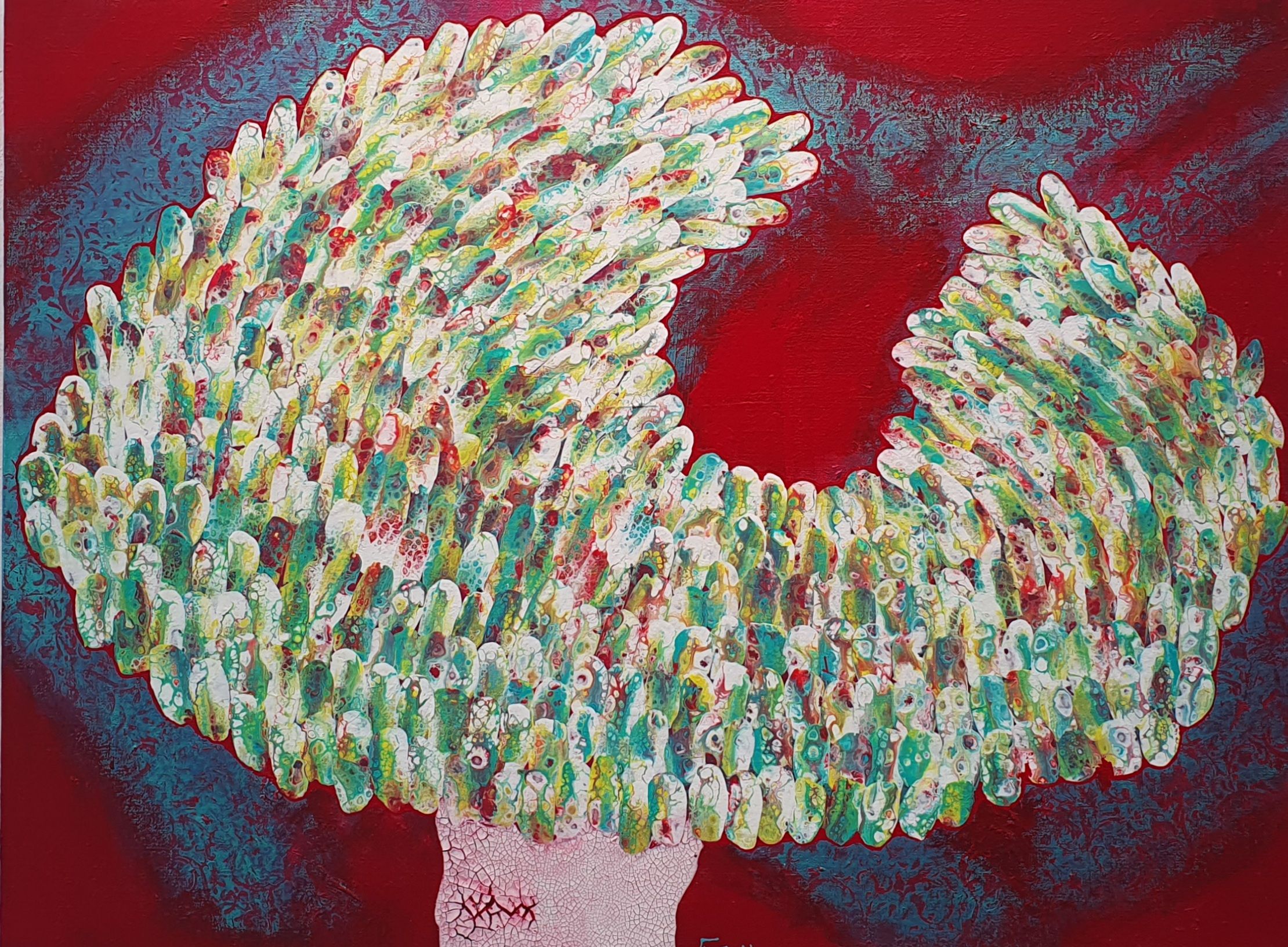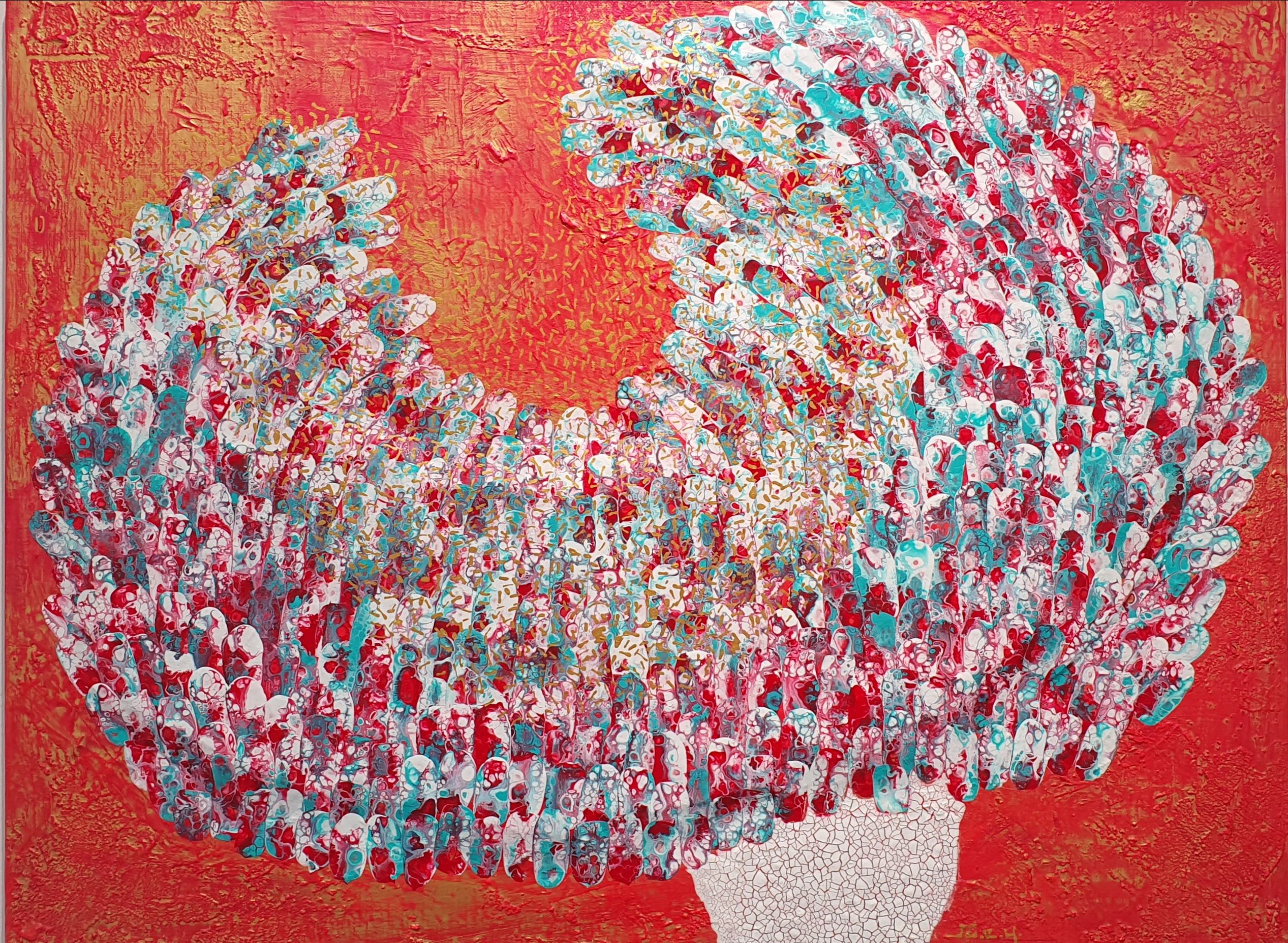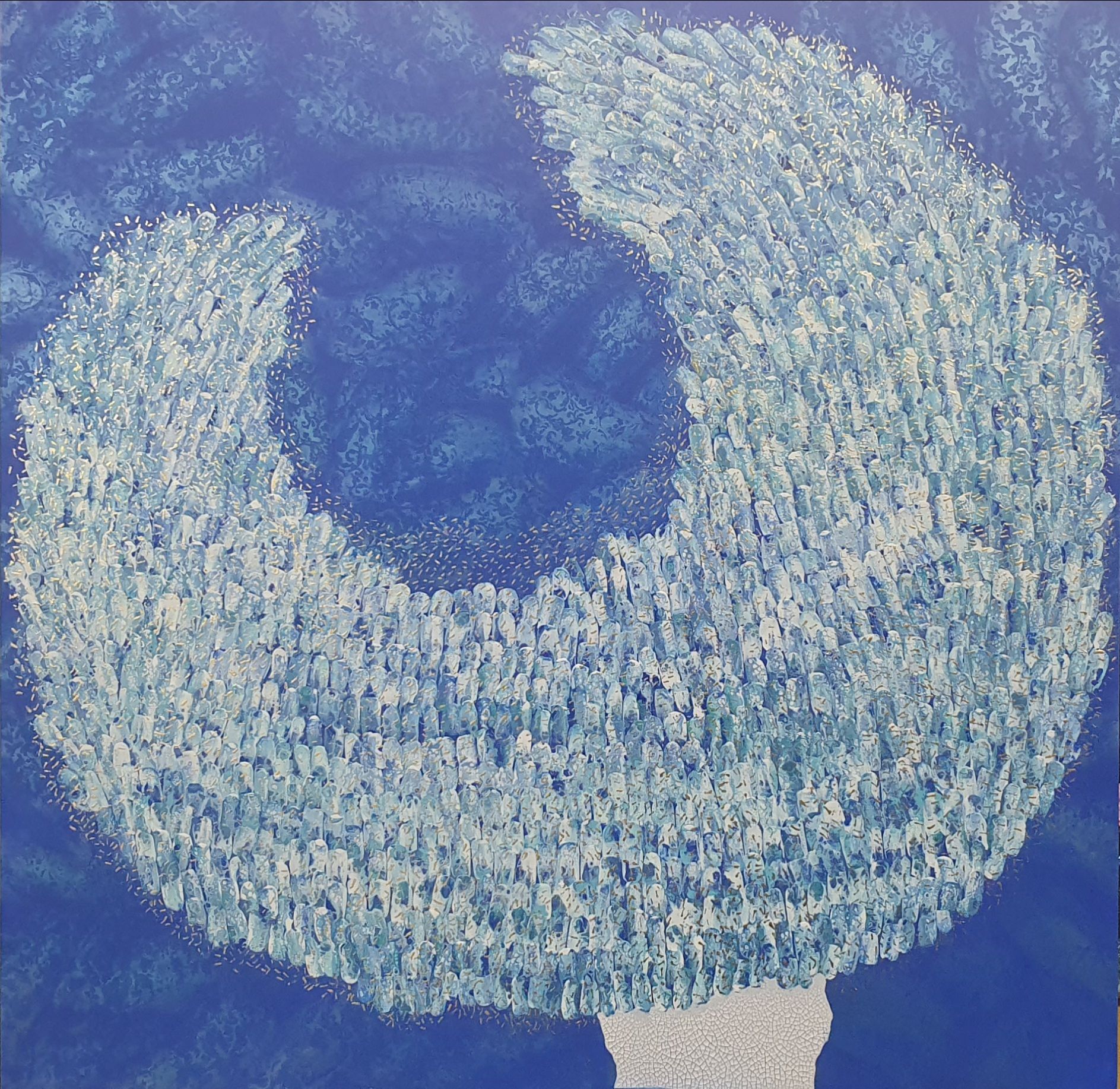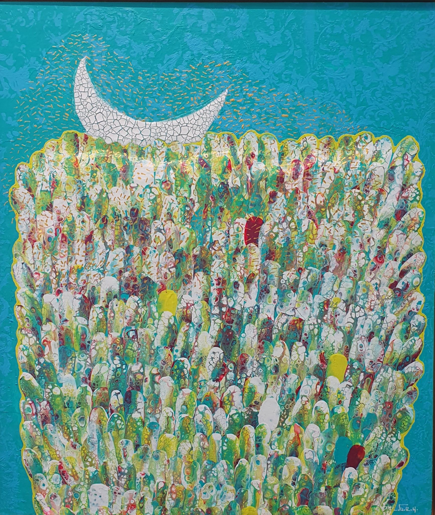 주은영 Ju eun young 전화: 010-8923-3642 (개인전 21회) AP갤러리 초대전 노원문화원 기획초대전 경춘선숲길갤러리(공모당선초대전) 도솔미술관 개인전 로쉬갤러리 초대전 인사아트프라자갤러리 개인전 콩세유 갤러리 한가람 갤러리 도봉갤러리 초대전 등 서울아트쇼 제주아트페스타 부산화랑아트페어 BAMA 조형아트쇼PLAS 싱가폴아트페어 홍콩WHATS 대구아트쇼 등 국내외 아트페어 및 단체전 220여회 현 사단법인 국제현대예술협회 인사동사람들 사무총장 인사국제아트페어 사무총장 한국미술협회 녹색미술협회 노원미술협회 노원문화재단 104마을 예술창작소 입주작가(2018~2024) -작가노트- 나의 작품들은 유동적이고 자연스러운 패턴을 통해 화면 전체에 리드미컬한 구성감을 제공하려고 시도하였다. 배경의 텍스처와 레이어링 콜라주 기법은 화면의 전경(Foreground)과 배경(Background)을 명확히 분리하면서도 유기적인 연결성을 유지하면서 불규칙하게 배치하여 비대칭적 구성을 이뤄 역동성을 강조했다. 또한 다양한 색채와 톤을 활용하여 깊이감과 공간감 그리고 균형감을 효과적으로 구현하려고 하였다. 작품 전반에 흐르는 색채의 조화는 정적이면서도 생동감 있는 이중적 감정을 전달한다. Fluid Art 기법에서 나타나는 셀(Cell) 효과와 유동적 물감 흐름의 텍스처는 화면에 독특한 시각적 요소를 제공하고 매끄러운 배경과 대비되는 콜라쥬 피스의 입체적 질감은 작품의 촉각적 특성을 강화하며, 시각적 긴장감을 조성한다. 각 피스들을 Layering하여 공간적 깊이와 입체감을 극대화했다. 이런 변화와 조화의 개별적 요소가 모여 하나의 전체를 구성하는 방식은 다양성과 통합의 개념을 암시한다. Fluid Art의 즉흥성과 레이어링 기법의 계획성이 결합되어, 조화와 대립이라는 미적 긴장을 창출하고 독창적인 시각적 쾌감을 제공하려고 하였다 그리하여 관람자로 하여금 작품을 단순히 시각적으로 감상하는 것을 넘어 내면의 고요함을 탐구하게 하며, 명상적이며 차분하고 신비로운 느낌과 생동감 넘치고 활기가 느껴지게 하고 싶었다. 다채로운 색감과 질감이 마치 자연의 에너지와 연결된 듯하고, 생명이 약동하는 듯한 느낌을 담고 싶었다. 작품에 주로 등장하는 달은 감정과 기억의 흐름, 끝없이 순환하는 이야기의 본질, 상실과 회복을 희망을 상징하며 씨앗은 이야기의 가능성과 확산, 누군가에게 전해질 서사의 잠재력을 달은 바람과 꿈, 소망과 회상의 공간을 의미한다. 어지러운 절망과 아픔들이 휘몰아치는 이즈음에도 함께 손 모아 달에 소원을 빌고 서로의 소망에 귀 기울여주고 싶은 마음를 담아 이 작품을 준비하였다.