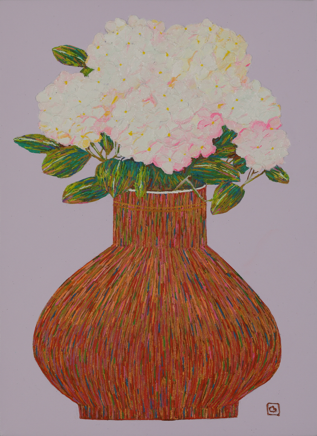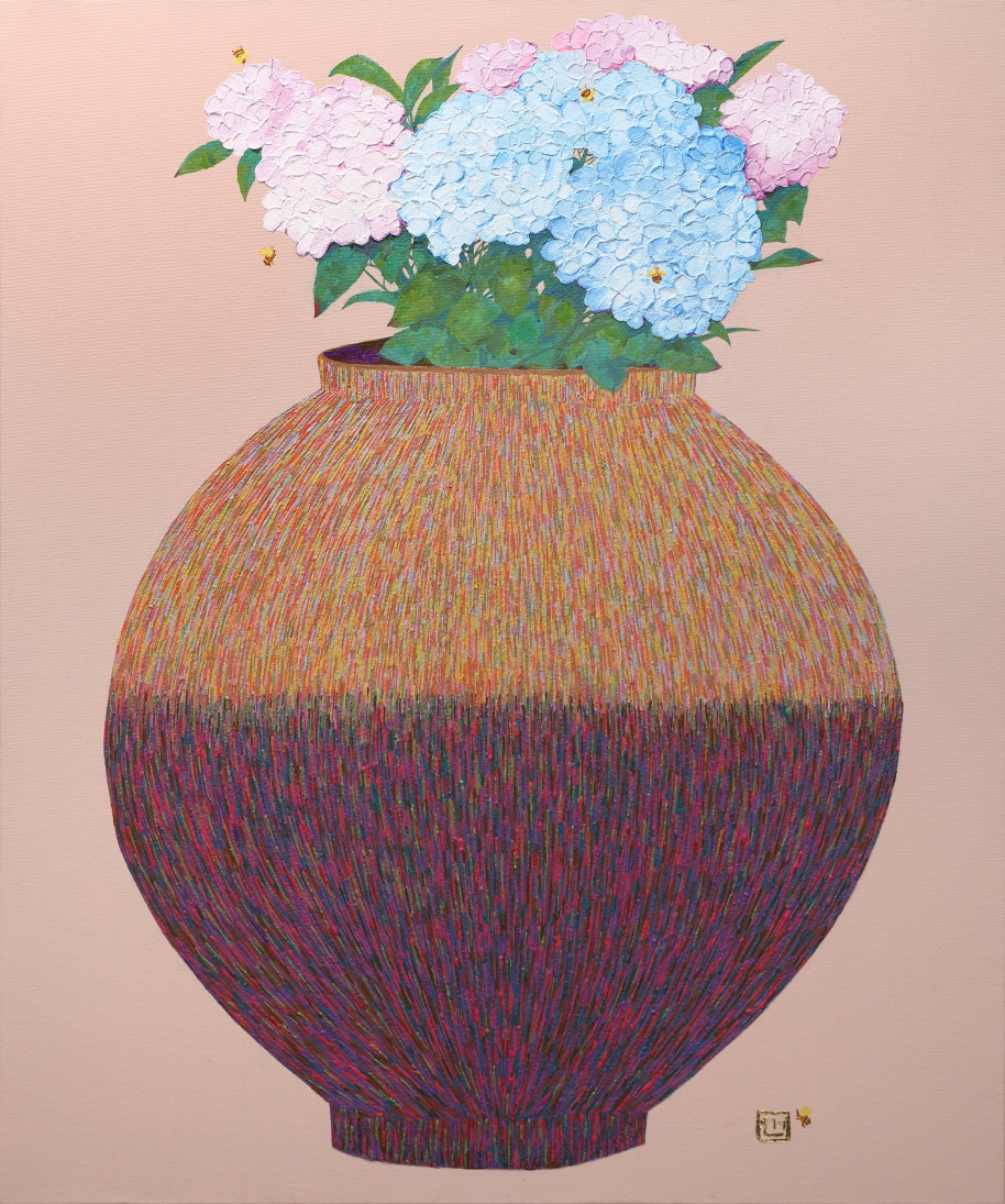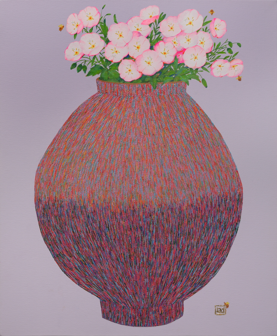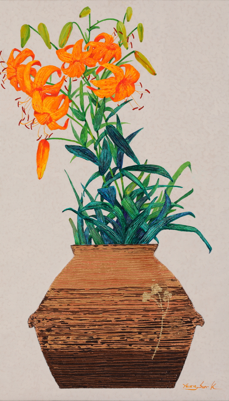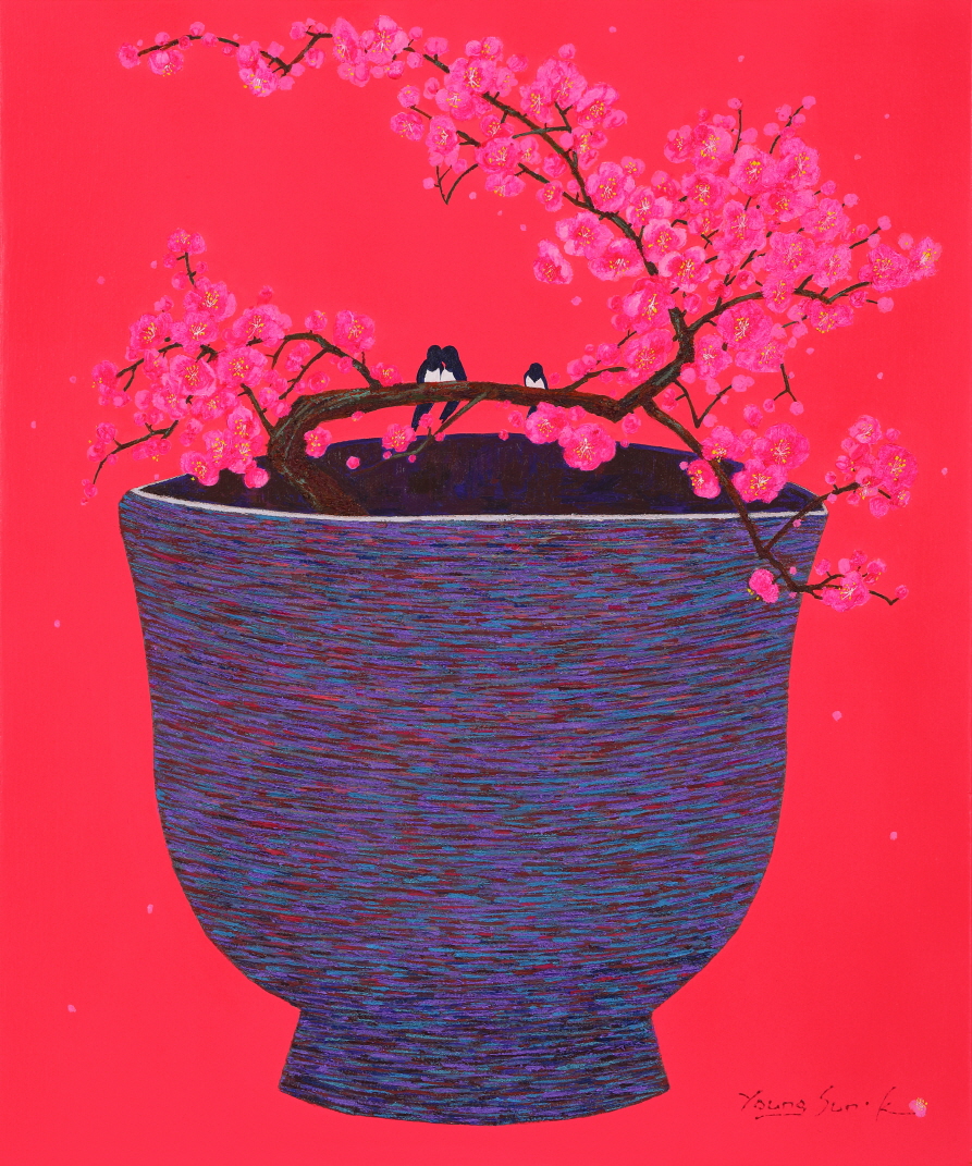 김영선 화가 작가노트 ‘달항아리(Moonjar)’를 통한 마음의 평화 긴긴 세월이 흘러서 이제는 기억도 아스라한 어느 해 8월, 그해 여름의 뜨거운 햇살이 좁은 골목 안을 가득 채울 때, 나는 담장 밖의 고개 숙여 외롭게 홀로 서 있는 키 큰 해바라기를 떠올리면서 화가의 꿈을 꾸었고, 활동 초기에는 작품 소재의 다양성과 색채의 대비를 추구하고, 긴장감을 끌어내기 위한 구성법으로 색채의 밀도와 붓놀림을 작품의 소재에 어울리도록 하기 위한 완급의 조율에 각별하게 노력을 기울여 왔다. 따라서 내 작품에 나타난 색채는 내 감성과 이성이 저 마음의 심연에서부터 무언가를 순간적으로 떠올려 영감을 주는 그런 색감으로 구성되어 있으며. 즉흥적 테크닉의 사용은 지양(止揚)하고, 충분한 혼색(混色)으로 소재가 갖는 특성을 살리고자 치밀한 계획을 세워 접근하였다. 하지만 작품 활동을 시작하고 수십 년 세월이 흐른 지금에 이르러, 나의 예술세계는 다양한 소재보다는 ‘달(Moon)과 항아리(Jar)’라고 하는 토속적이면서 동양적이고 동시에 세계성(Globality)도 담고 있는 특정 소재에 천착(穿鑿)하게 되었고, ‘달’과 ‘항아리’가 풍기는 따듯함과 부드러움의 조화를 통해, 내 작품을 감상하는 이들에게 고향에 대한 그리움과 어릴적 추억을 통한 마음의 평화를 주기 위해 노력하고 있다. AI(Artificial Intelligence) 등의 최첨단 기술까지 작품 활동에 응용하는 미술계의 변화무쌍한 흐름이 ‘급속한 환경 변화 때문에 심신이 지쳐가는 현대인의 불안감을 더욱 증폭시키는 것은 아닌가?’라는 생각으로 나는 내 작품의 주제인 ‘달’과 ‘항아리’ 그리고 이 2가지를 합한 ‘달항아리(Moon Jar)’를 통해 현대인들에게 ‘달’의 온기와 ‘항아리’의 부드러움을 선물하고, 그들이 나의 작품에 매력과 호기심을 갖도록 도자성(陶瓷性) 화풍에 색채를 담아내고, 심미안(審美眼)의 능력을 길러, 세상 사람에게 행복과 향기를 전달하고자 오늘도 나는 ‘물감 놀이’를 즐기고 있다